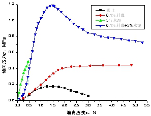 該技術(shù)通過將離散的短纖維絲(人工合成或者天然植物纖維)均勻摻入土體中,通過纖維和土顆粒之間的界面力學(xué)作用及纖維的拉筋作用,達(dá)到顯著提高土體的工程力學(xué)性能的目的。同傳統(tǒng)技術(shù)相比,該技術(shù)的具有如下優(yōu)勢:(1)纖維與土體作用屬于物理過程,不改變土體的自然屬性,綠色環(huán)保;(2)纖維在土體中隨機(jī)分布,具有三維加筋作用,土體加固后具有各向同性特點(diǎn);(3)纖維加筋的施工工藝簡單,工程性價(jià)比較高;(4)纖維加筋不僅具有顯著的增強(qiáng)效果,還能有效抑制土體破壞裂隙的發(fā)育。