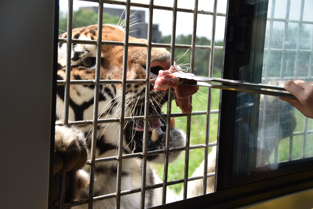 瞧瞧這鋒利的牙齒。據(jù)說(shuō)一只成年老虎一天可以吃掉60斤肉食,老虎的食量也是夠驚人的!