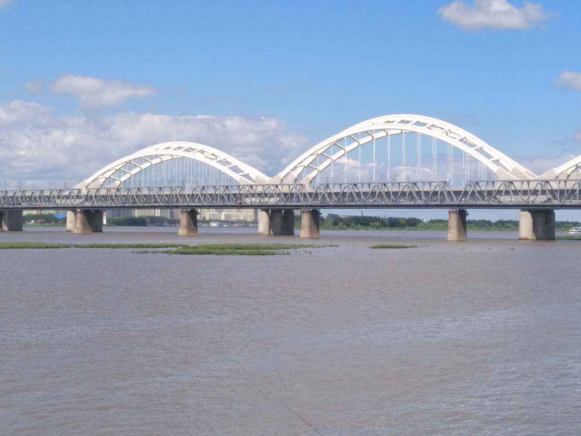 都說(shuō)早起的鳥(niǎo)兒有蟲(chóng)吃,早起果然看到不一樣的風(fēng)景。昨天晚上去的是界河廣場(chǎng)的右邊,今晨往左邊走,下面有一個(gè)長(zhǎng)長(zhǎng)的木棧道。穿過(guò)木棧道,再向界河挺進(jìn)一些,竟然看到我們鮮艷的五星紅旗了,給我們莊嚴(yán)的國(guó)旗來(lái)一個(gè)特寫(xiě)吧。你還想越過(guò)鐵絲網(wǎng)再往前走一點(diǎn)嗎?不行了,這里已經(jīng)是隔離帶了,越過(guò)鐵絲網(wǎng)過(guò)去就是“老毛子”——俄羅斯人的地盤(pán)了。