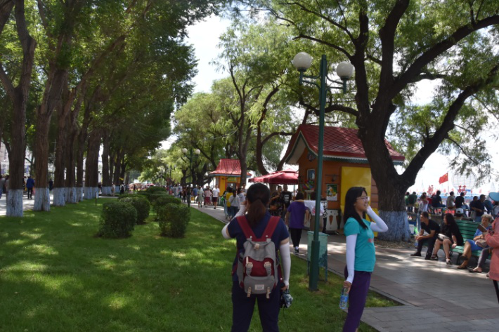 松花江畔開(kāi)放式的斯大林公園,紫外線(xiàn)太強(qiáng),在樹(shù)蔭下涼快一會(huì)兒。