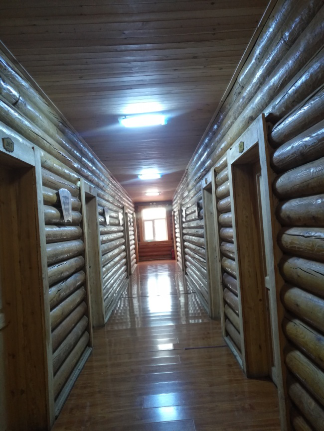 抵達(dá)極具異域風(fēng)情的室韋小鎮(zhèn)。這天入住的酒店樣子有點(diǎn)奇怪:全木制結(jié)構(gòu)的“木刻楞”房子,看樣子很環(huán)保;唯一不足的就是隔音效果不太好,鄰間用水的嘩嘩聲聽(tīng)得一清二楚。晚上會(huì)不會(huì)再有被呼嚕聲吵醒的問(wèn)題,我著實(shí)有點(diǎn)擔(dān)憂(yōu)。