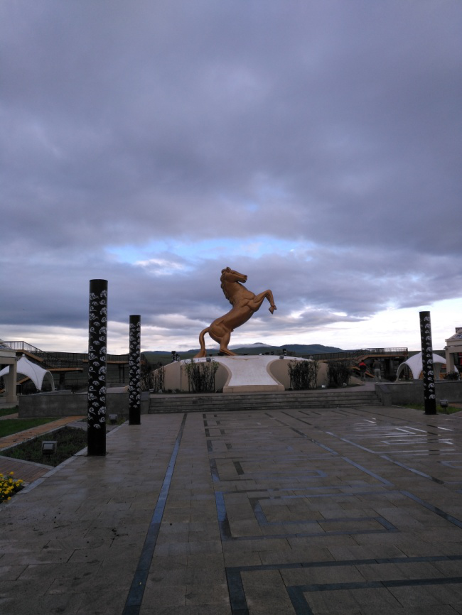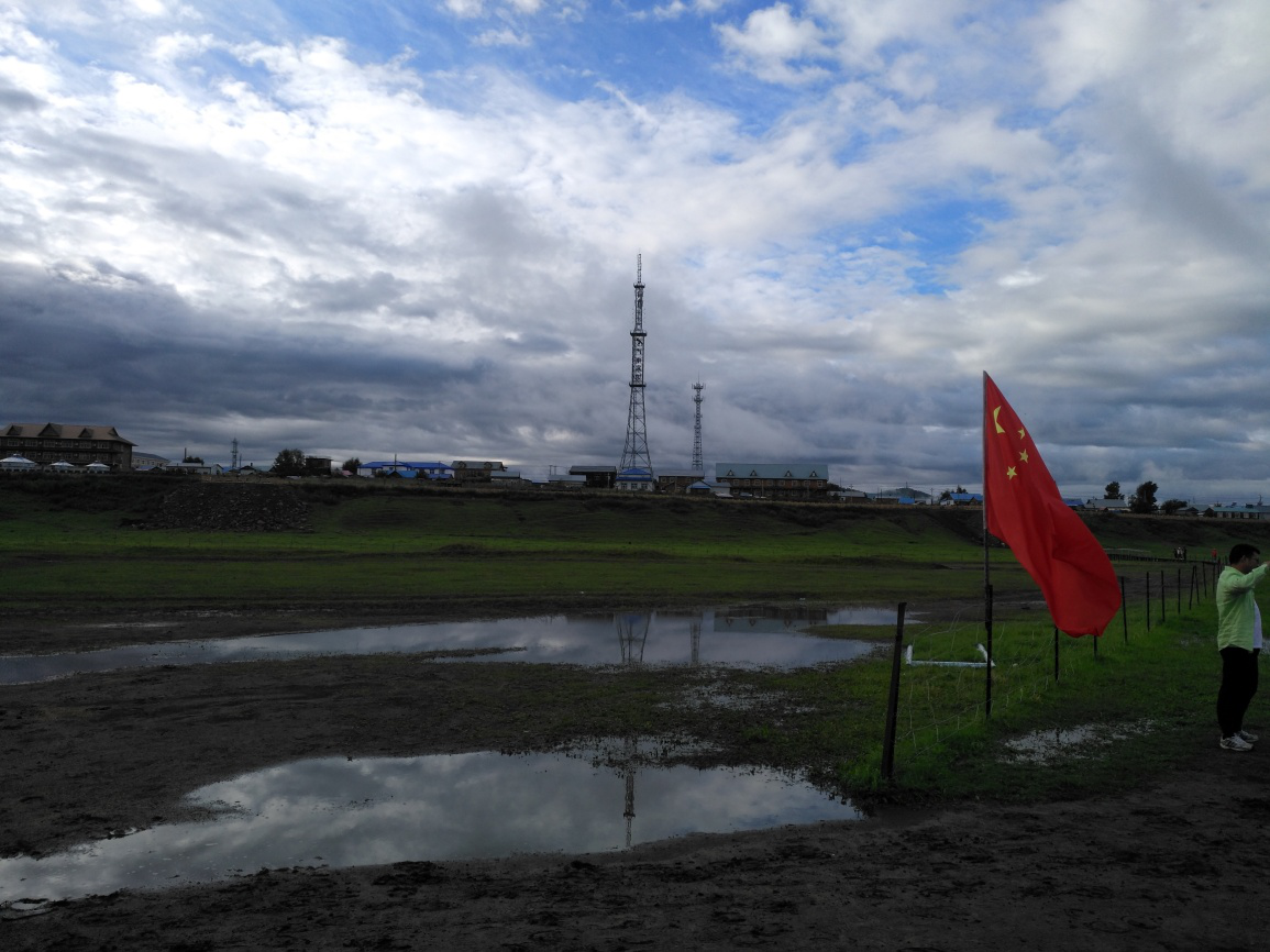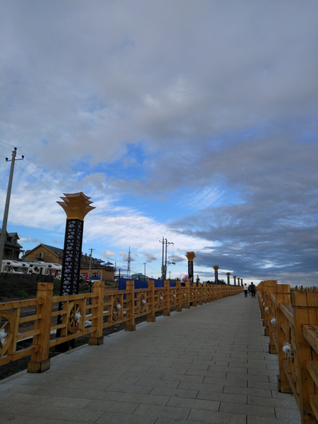 清晨的室韋小鎮(zhèn)界河廣場(chǎng),天馬行空。許是被昨夜的雨神嚇到了,今天的太陽(yáng)姑娘躲在云層里羞羞答答的,就是不肯露個(gè)全臉。