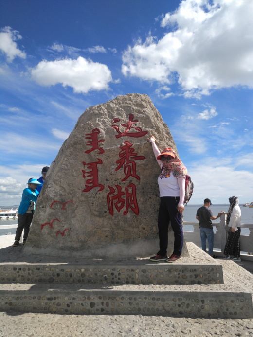 呼倫湖,又叫達(dá)賚(拼音lái)湖。湖邊的紫外線(xiàn)很強(qiáng),我不得不全副武裝。同行的隊(duì)友說(shuō)要離我遠(yuǎn)一點(diǎn),因?yàn)槲铱瓷先ハ袷莵?lái)搞恐怖活動(dòng)的。