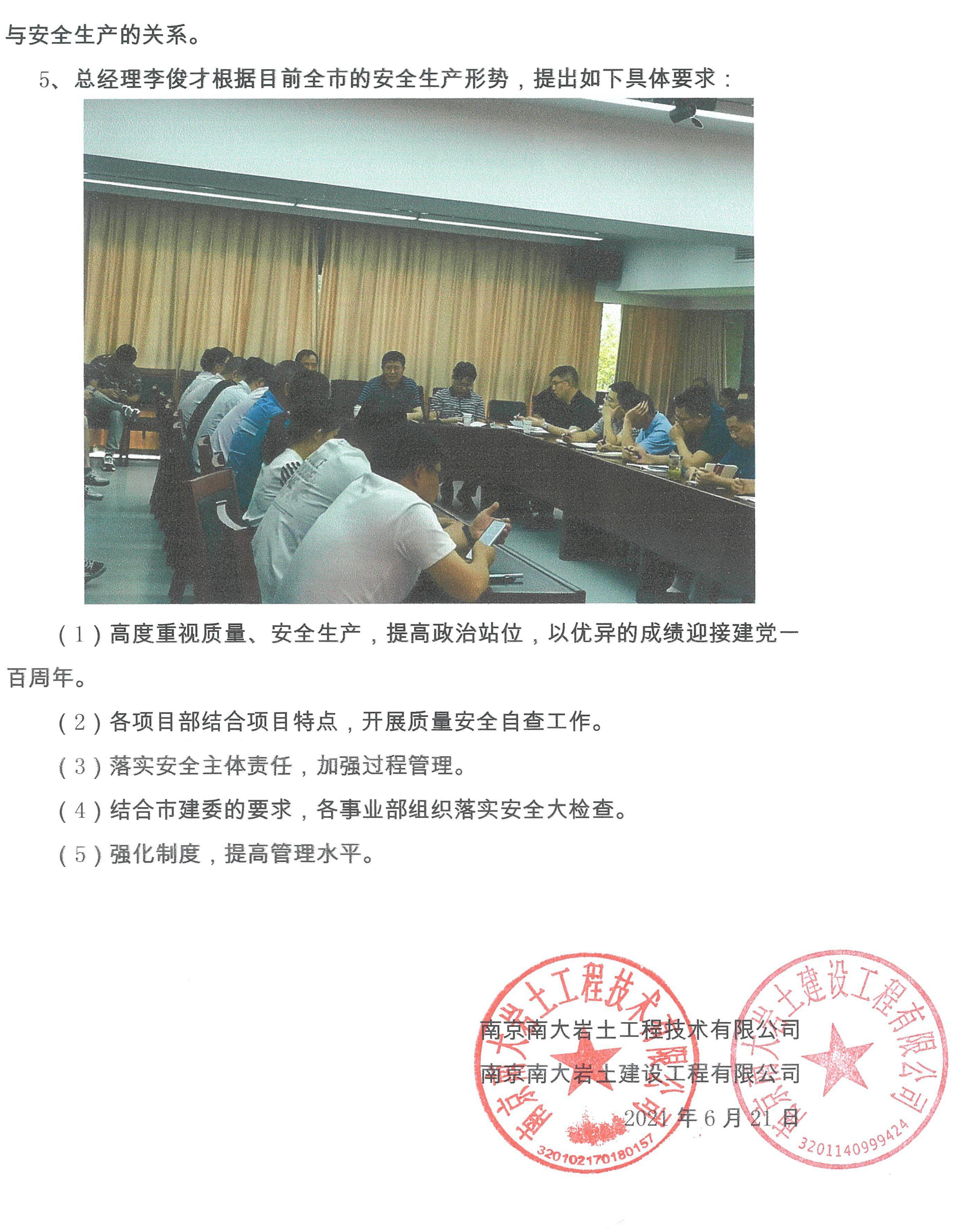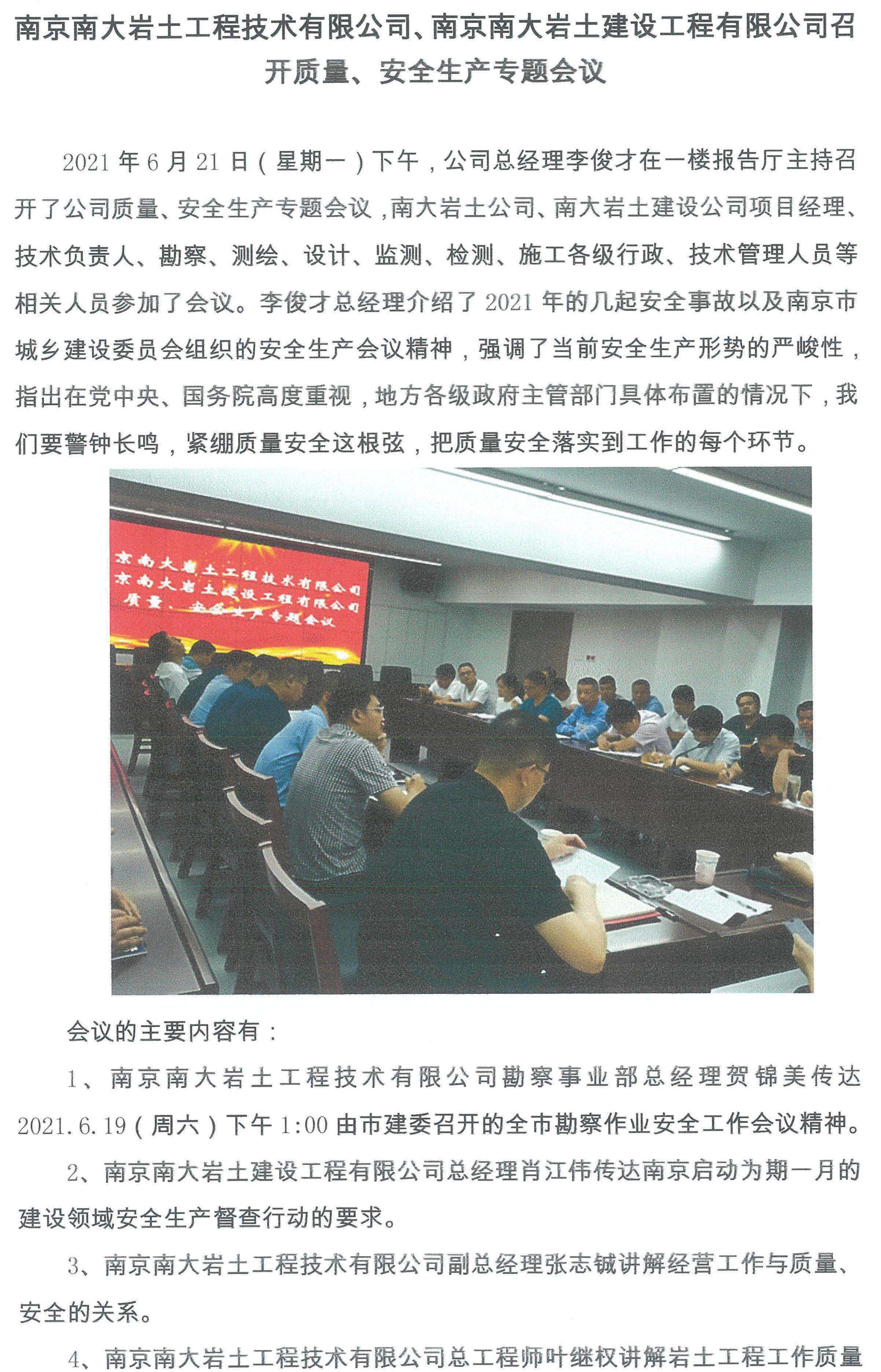 南大巖土、南大建設(shè)召開質(zhì)量、安全生產(chǎn)專題會(huì)會(huì)議