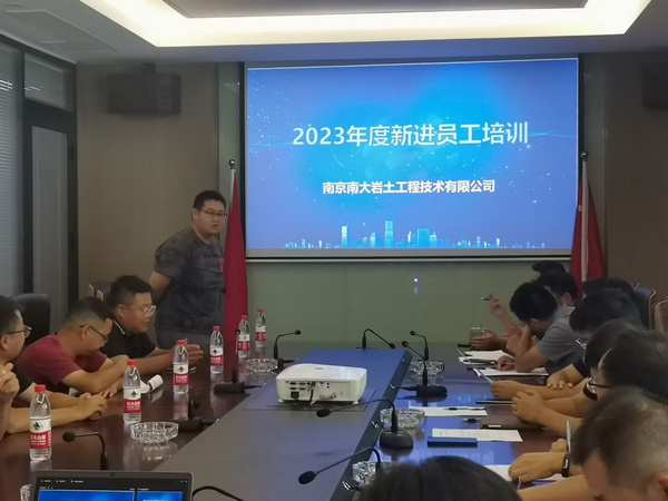 公司于2023年8月1日下午14:00在公司四樓會議室召開了2023年度新員工培訓,參加本次會議的新員工10人,公司領導9人。會議由總經理李俊才、總工程師董志高、副總經理張志鋮、李友生,勘察事業(yè)部總經理賀錦美,監(jiān)測事業(yè)部總經理劉松,檢測部總經理兼南京科測工程科技有限公司總經理盧亮,測繪事業(yè)部總經理路慶保,財務部經理計毓等對公司的歷史與前景、公司的組織架構、業(yè)務范圍、各事業(yè)部的日常運營管理制度及安全生產知識及制度等做了全方位的講解。